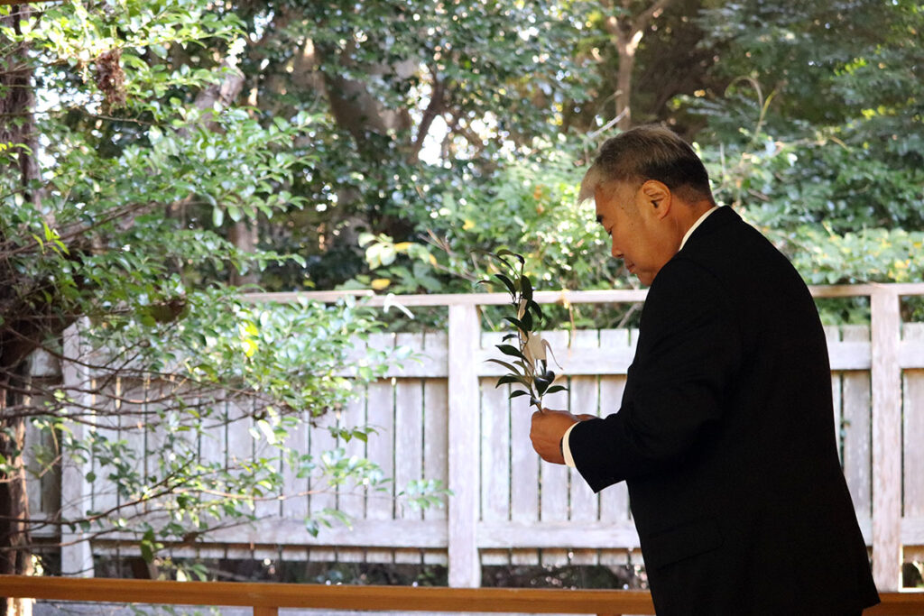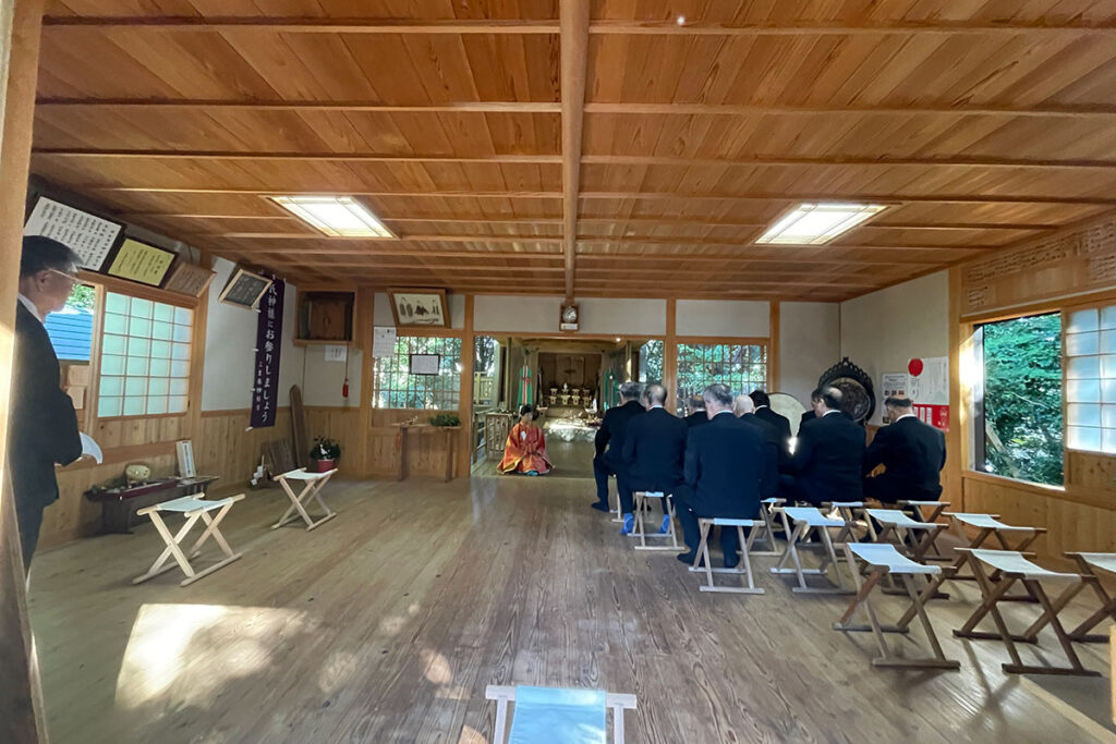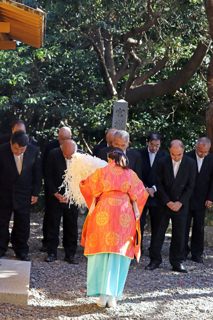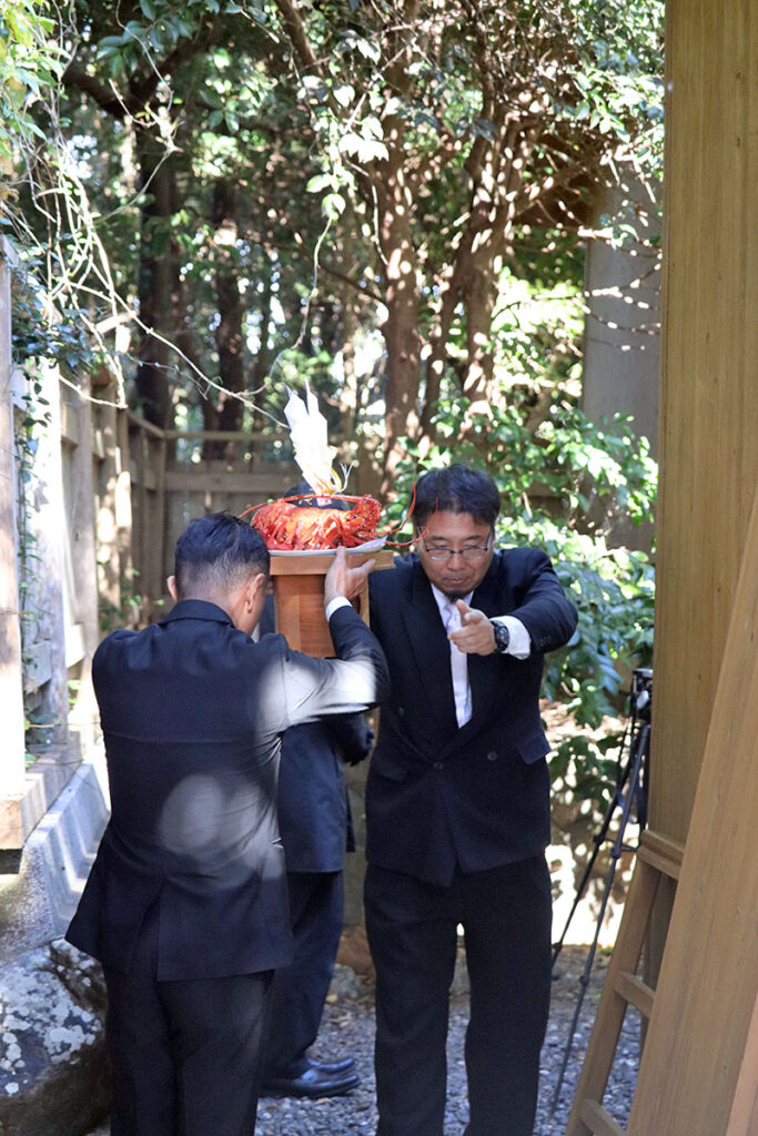 今年は二隻の船で競い合う競漕神事は行われませんでしたが、晩秋の暖かな日差しの中厳かに執り行われました。無事 海の安全と豊漁を祈願されました。