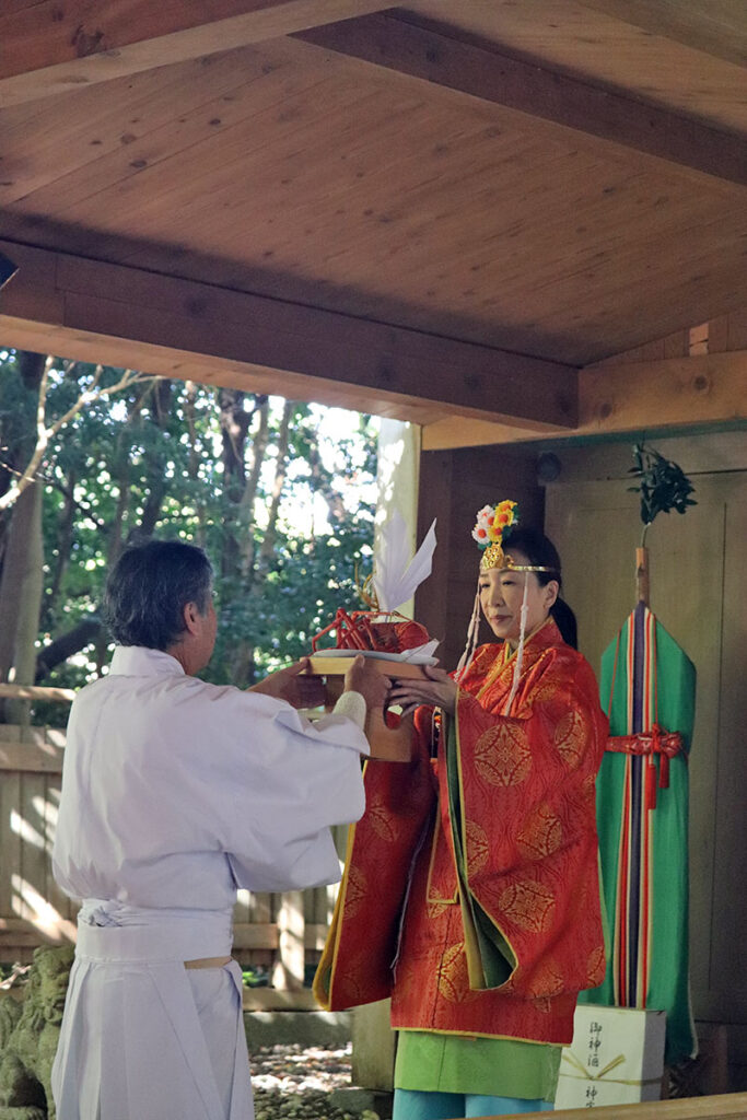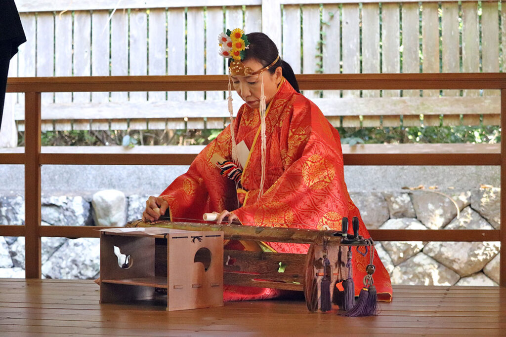 神事に続き勤労感謝祭、浦野亜子祢宜(ねぎ)よる、 二本の絃を張った八雲琴(やくもごと)の演奏もありました。