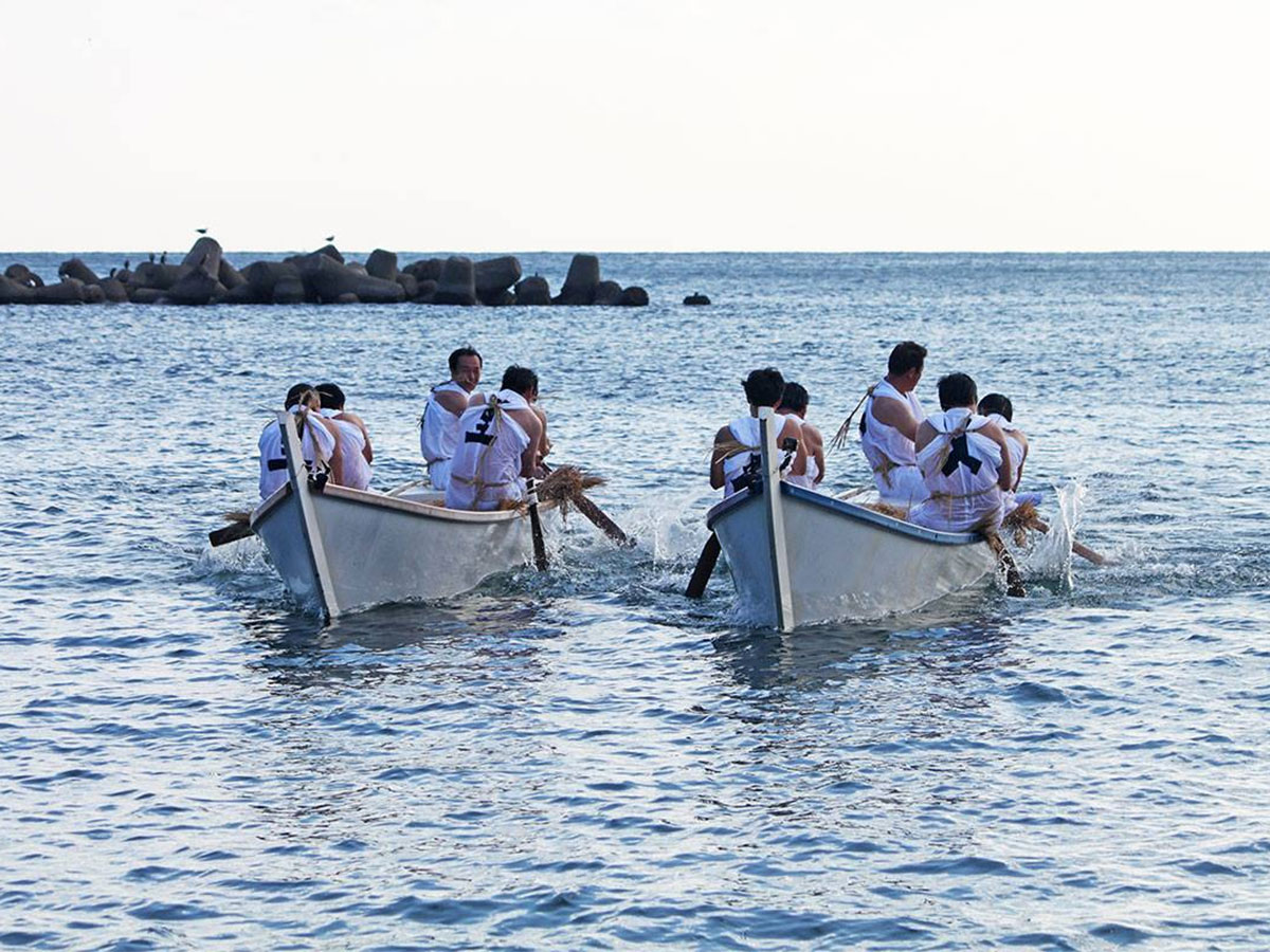 | 11月21日~23日 | 二船祭り(行事は21日~23日の間) | 21日 万度迎え:伊勢神宮からのお札を受けに行きます 22日 小舟作り(二舟殿入祭):神に供える小舟、オオブネ、シゲを作ります。 23日 二舟祭り(競漕神事):2隻の船に青年男子が5人ずつ乗って船を漕ぐのを 競い合い、その勝敗によって豊漁を占います。 23日 二舟殿修祭 |