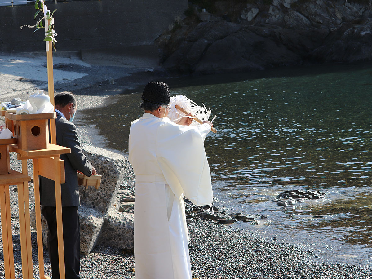 一年の五穀豊穣を祈って厳かに執り行われます。(海士潜女神社にて)